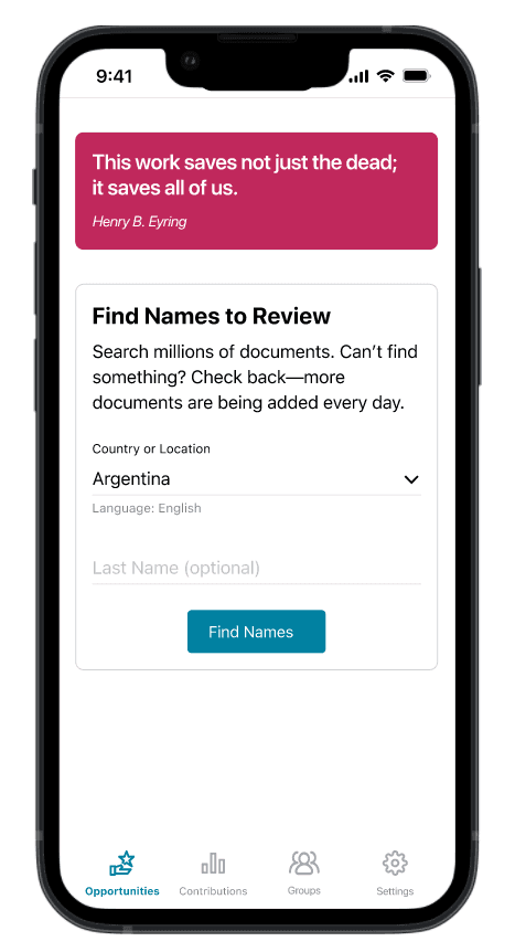 FamilySearch's Get Involved app helps users transcribe historical records through indexing. Despite the spiritual and genealogical importance of this work, the app struggled with low adoption and retention among younger users (ages 15-30), threatening the long-term sustainability of this volunteer effort.